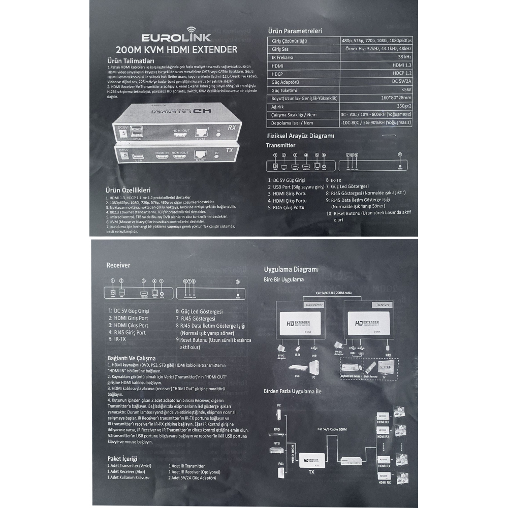 HDMI ve USB Kablonuzu Cat6 kablo ile 4K 200 metre uzatabilirsiniz.
